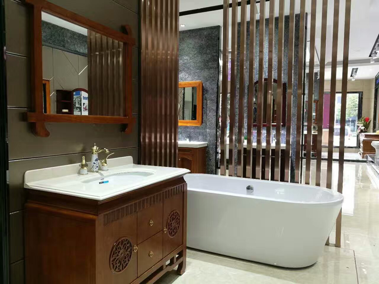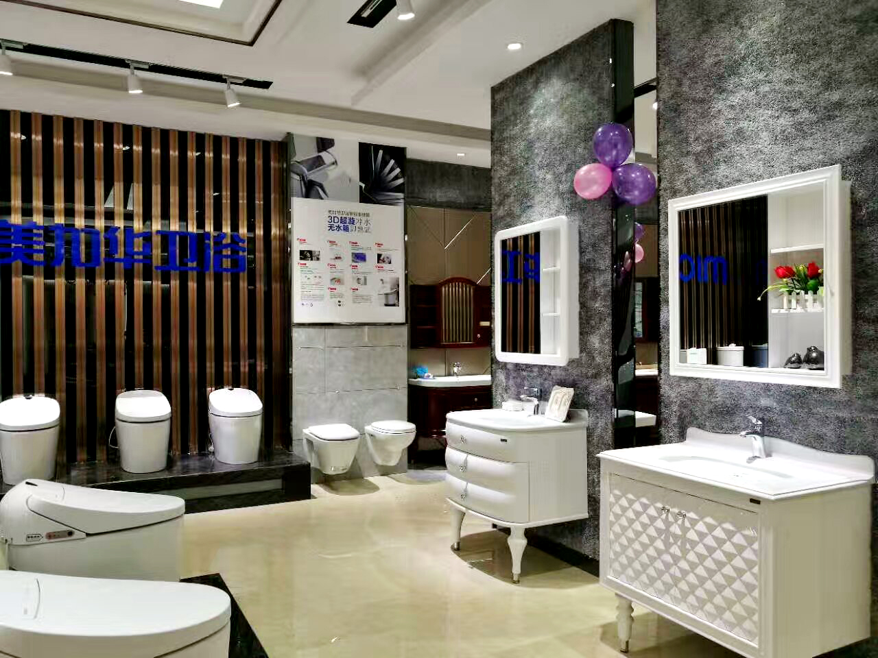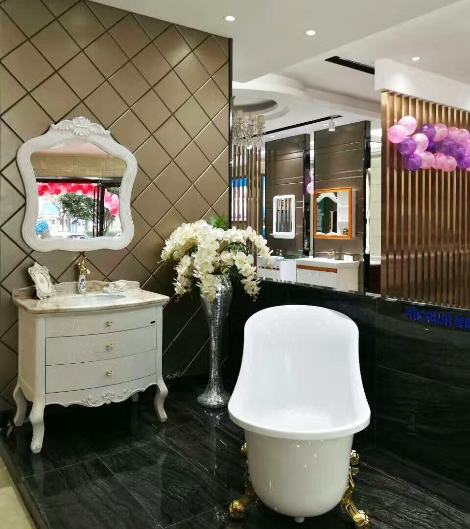 除了坐便器,美加華衛(wèi)浴的另一王牌產(chǎn)品——浴室柜,在店內(nèi)也是隨處可見。或是歐式、美式的華貴、或是中式的典美,又或是現(xiàn)代的簡約,琳瑯滿目的品種,讓消費(fèi)者在一店便可享受多樣的選購體驗(yàn)。