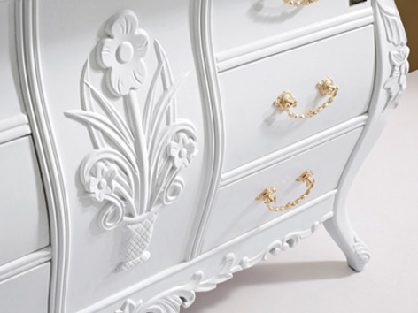 MFG-24實(shí)木仿古柜,采用泰國進(jìn)口橡木,配以水晶木紋白天然大理石臺面,以及圓弧形立體大理石臺下盆。純白色彩配以金色五金拉手,整體外觀凸現(xiàn)新一代田園風(fēng)格,產(chǎn)品游走于現(xiàn)代與復(fù)古之間,線條簡約而不簡單,品味低調(diào)而不失奢華。